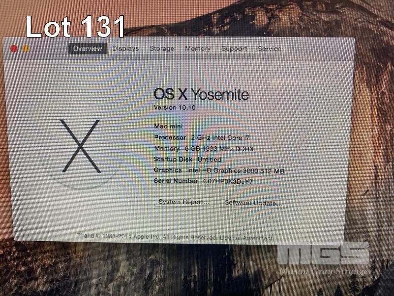 APPLE MAC MINI (A1347), CORE i7 2635QM (2ND GEN) @ 2GHz, 8GB DDR3 RAM, 2 x 500GB SATA HDD, INTEL HD VIDEO, Wi-Fi, MAC OS 10.10 INSTALLED (NO KEYBOARD, NO MOUSE, NO APPLE POWER CORD) S/N:C07HP0K3DJY7