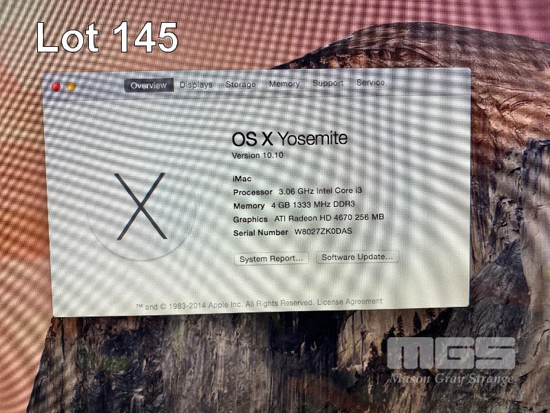 APPLE iMAC (A1311), CORE i3 540 @ 3.06GHz, 4GB DDR3 RAM, 500GB SATA HDD, DVD-RW, BUILT-IN 21.5" DISPLAY (1920x1080), 256MB ATI RADEON HD 4670 VIDEO, Wi-Fi, MAC OS 10.10 INSTALLED (NO KEYBOARD, NO MOUSE, NO APPLE POWER CORD) (NOTE: SCREEN DISCOLORATION) S/N:W8027ZK0DAS