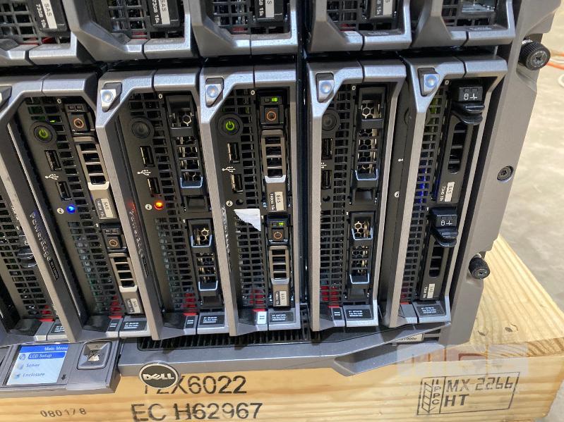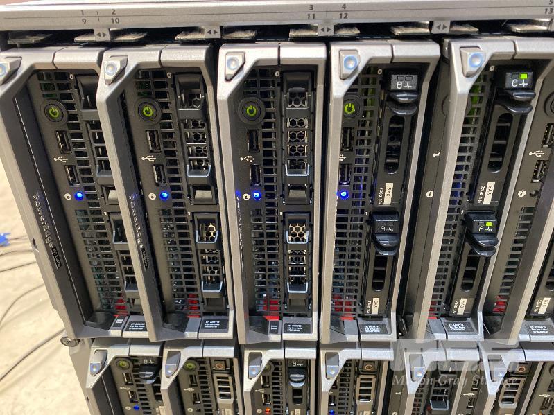 DELL POWEREDGE M1000e ENCLOSURE WITH 16 x DELL POWEREDGE BLADE SERVERS - DELL POWEREDGE M710HD, 2 x XEON X5660 @ 2.8GHz, 128GB RAM, NO HDD - DELL POWEREDGE M600, 2 x XEON E5450 @ 3GHz, 32GB RAM, NO HDD - DELL POWEREDGE M710HD, 2 x XEON X5660 @ 2.8GHz, 128GB RAM, NO HDD - DELL POWEREDGE M600, XEON E5310 @ 1.6GHz, 16GB RAM, 2 x 73GB HDD - DELL POWEREDGE M600, XEOB E5430 @ 2.6GHz, 8GB RAM, 2 x 73GB HDD - DELL POWEREDGE M600, XEON E5430 @ 2.6GHz, 8GB RAM, 2 x 73GB HDD - DELL POWEREDGE M610, 2 x XEON E5640 @ 2.6GHz, 96GB RAM, 2 x 146GB HDD - DELL POWEREDGE M600, 2 x XEON E5450 @ 3GHz, 32GB RAM, 73GB HDD - DELL POWEREDGE M600, 2 x XEON E5450 @ 3GHz, 32GB RAM, 73GB HDD, 146GB HDD - DELL POWEREDGE M610, XEON E5640 @ 2.6GHz, 8GB RAM, 2 x 146GB HDD - DELL POWEREDGE M600, 2 x XEON E5450 @ 3GHz, 32GB RAM, 2 x 146GB HDD - DELL POWEREDGE M710HD, 2 x XEON X5660 @ 2.8GHz, 128GB RAM, 2 x 146GB HDD - DELL POWEREDGE M710HD, 2 x XEON X5660 @ 2.8GHz, 128GB RAM, NO HDD - DELL POWEREDGE M610, XEON E5640 @ 2.6GHz, 8GB RAM, 2 x 146GB HDD - DELL POWEREDGE M710HD, 2 x XEON X5660 @ 2.8GHz, 128GB RAM, NO HDD - DELL POWEREDGE M600, XEON E5310 @ 1.6GHz, 16GB RAM, 2 x 73GB HDD (NO CABLES) S/N:9513X1S