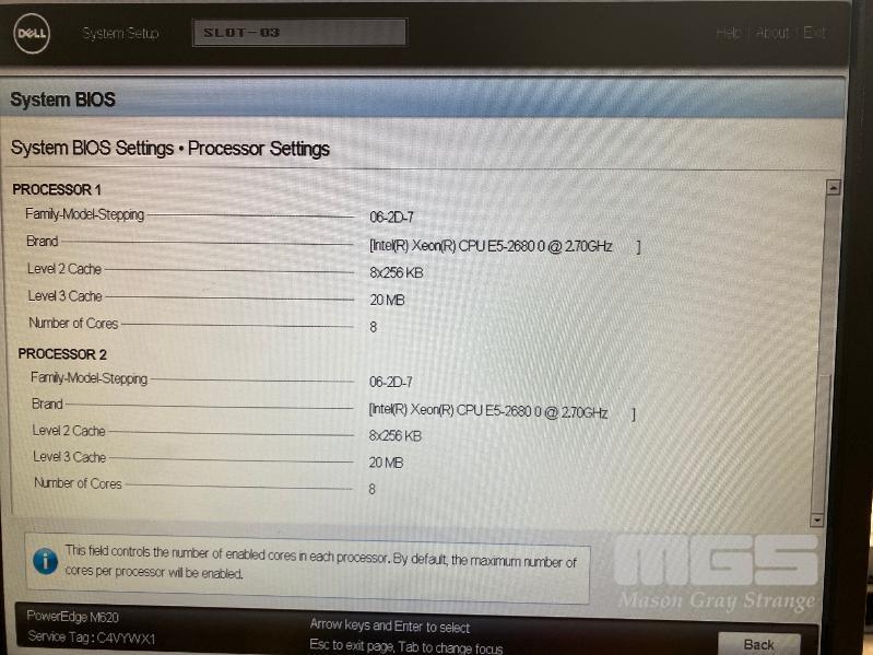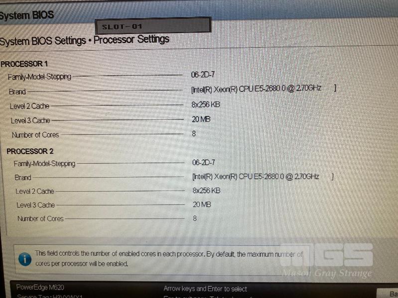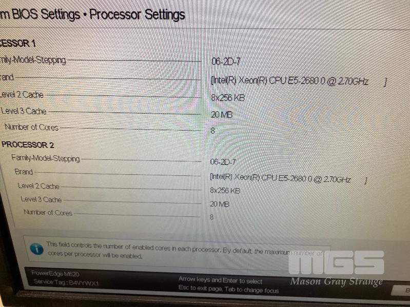 DELL POWEREDGE M1000e ENCLOSURE WITH 8 x DELL POWEREDGE BLADE SERVERS - ALL DELL POWEREDGE M620, 2 x XEON E5-2680 @ 2.7GHz, 192GB RAM, 2 x 146GB HDD (NO CABLES) S/N:F3VYWX1