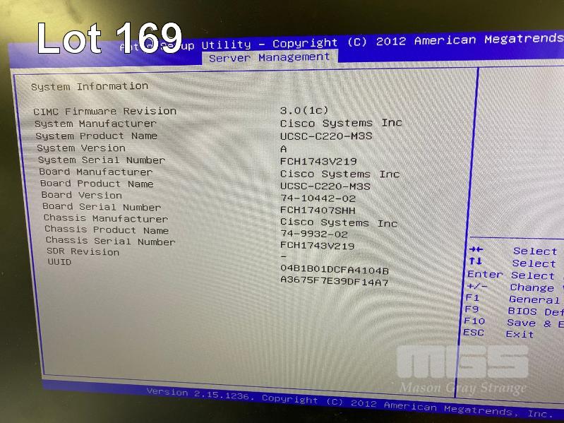 RACKMOUNT SERVER, CISCO UCS C220 M3, 1U, 2 x XEON E5-2650 v2 @ 2.6GHz, 128GB RAM, NO HDD, FIBRE CHANNEL, 2 x 650W PSU S/N:FCH1743V219