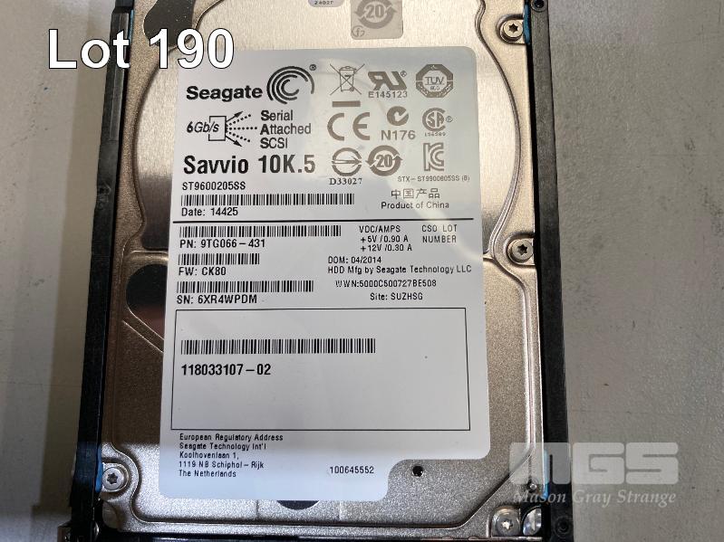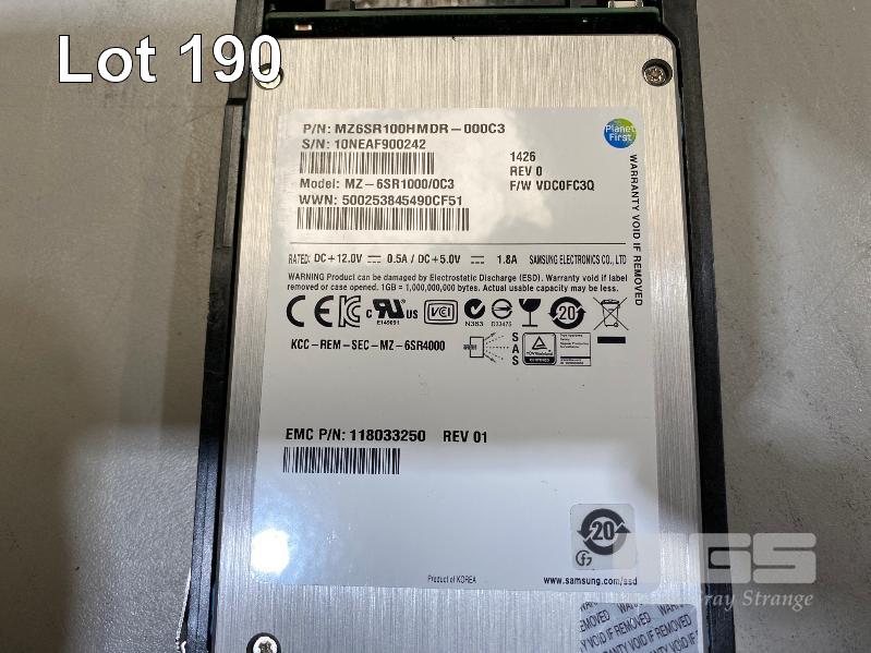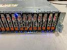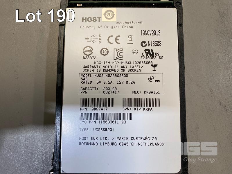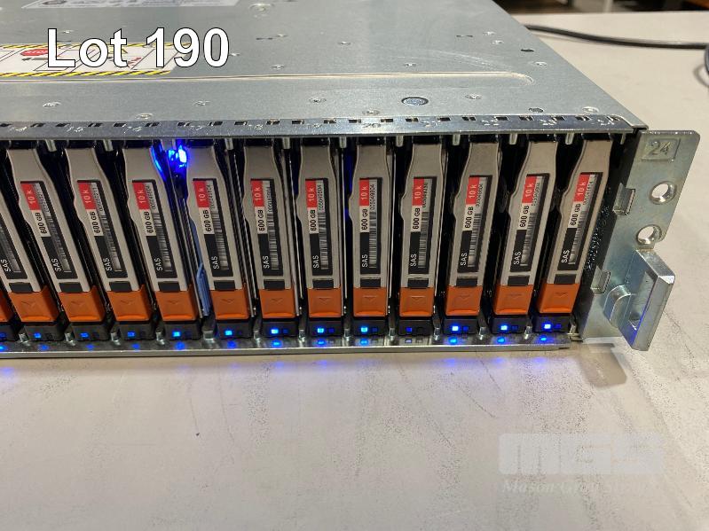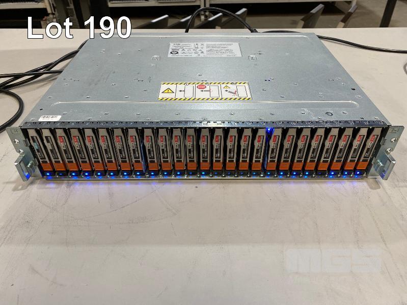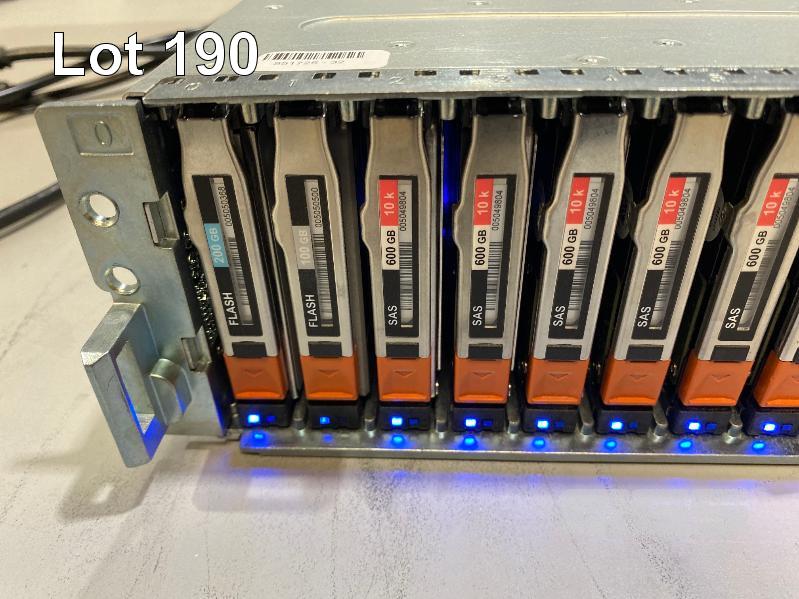 RACKMOUNT STORAGE DISK ARRAY ENCLOUSRE, EMC, MODEL SAE, 2U, WITH 23 x 600GB SAS HDD, 1 x 200GB FLASH HDD, 1 x 100GB FLASH HDD, 2 x 6GB SAS LCC CONTROLLER CARDS (303-104-000E), 2 x 400W PSU (071-000-541) (NO CABLES) S/N:JWXED134402080, JWXEC134402046