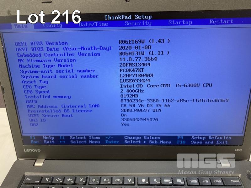 LAPTOP, LENOVO THINKPAD T460 (20FMS1S404), CORE i5 6300U (6TH GEN) @ 2.4GHz, 8GB DDR3 RAM, 256GB SSD, 14" WIDESCREEN (1366x768), INTEL HD VIDEO, Wi-Fi, BLUETOOTH, WINDOWS 10 PRO INSTALLED & POWER SUPPLY S/N:PC0K47KT