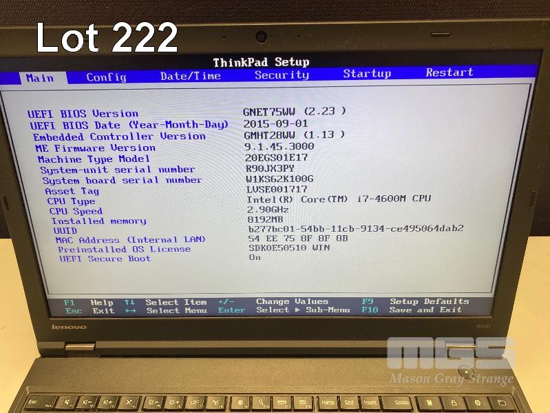 LAPTOP, LENOVO THINKPAD W541 (20EGS01E17), CORE i7 4600M (4TH GEN) @ 2.9GHz, 8GB DDR3 RAM, 256GB SSD, DVD-RW, 15.6" WIDESCREEN (1920x1080), INTEL HD VIDEO, 2GB NVIDIA QUADRO K1100M VIDEO, Wi-Fi, BLUETOOTH, WINDOWS 10 PRO INSTALLED, DOCKING STATION & POWER SUPPLY (NOTE: MARKS ON SCREEN, DAMAGED USB PORT RHS) S/N:R90JX3PY