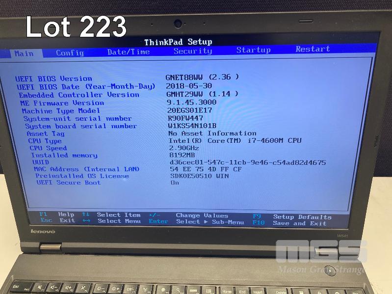 LAPTOP, LENOVO THINKPAD W541 (20EGS01E17), CORE i7 4600M (4TH GEN) @ 2.9GHz, 8GB DDR3 RAM, 500GB SATA HDD, DVD-RW, 15.6" WIDESCREEN (1920x1080), INTEL HD VIDEO, 2GB NVIDIA QUADRO K1100M VIDEO, Wi-Fi, BLUETOOTH, WINDOWS 10 PRO INSTALLED, DOCKING STATION & POWER SUPPLY (NOTE: WHITE SPOT ON SCREEN, MARKS ON SCREEN) S/N:R90FW447