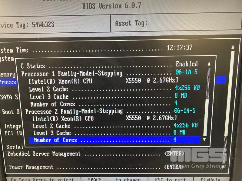 RACKMOUNT SERVER, DELL POWEREDGE R610, 1U, 2 x XEON X5550 @ 2.67GHz, 16GB ECC DDR3 RAM, 2 x 146GB SAS HDD, DVD-ROM, 2 x FIBRE CHANNEL, 2 x PSU (NOTE: MESSAGE "RAID CONTROLLER BATTERY FAILED") S/N:54W632S