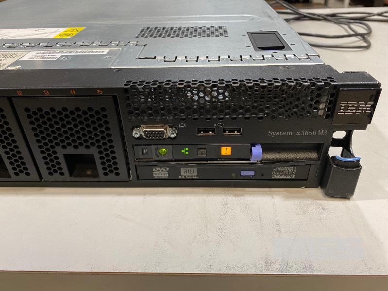 RACKMOUNT SERVER, IBM SYSTEM x3650 M3, 2U, 2 x XEON E5620 @ 2.4GHz, 28GB RAM (SHOWING - DIMM FAILED ERROR), NO HDD, DVD-RW, 2 x FIBRE CHANNEL, 2 x 4-PORT NETWORK, 2 x PSU S/N:06DA228
