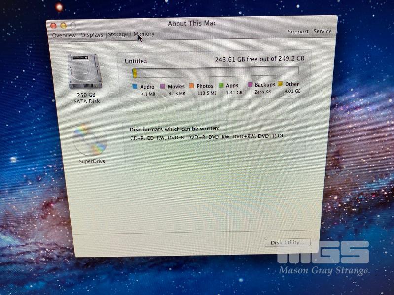 TOWER PC, APPLE MAC PRO (A1186), 2 x XEON 5150 @ 2.66GHz, 4GB ECC DDR2 RAM, 250GB SATA HDD, DVD-RW, 256MB NVIDIA GEFORCE 7300 GT VIDEO, MAC OS 10.7 INSTALLED (NO KEYBOARD, NO MOUSE, NO APPLE POWER CORD) S/N:YM6380AEUPZ