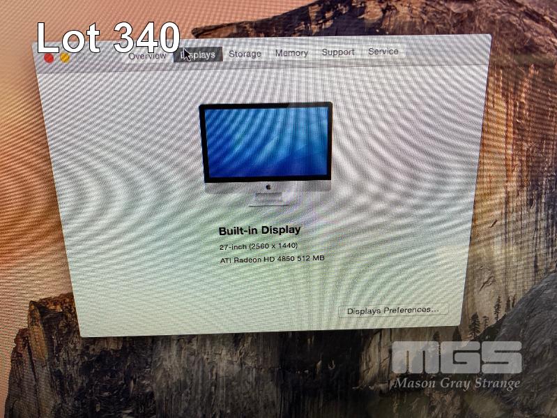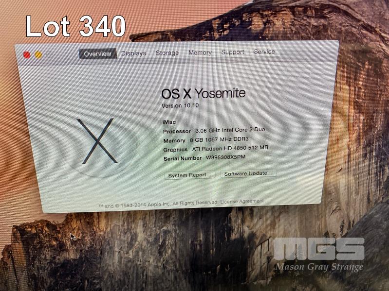 APPLE iMAC (A1312), CORE 2 DUO E7600 @ 3.06GHz, 8GB DDR3 RAM, 1TB SATA HDD, DVD-RW, BUILT-IN 27" DISPLAY (2560x1440), 512MB ATI RADEON HD 4850 VIDEO, Wi-Fi, MAC OS 10.10 INSTALLED (NO KEYBOARD, NO MOUSE, NO APPLE POWER CORD) (NOTE: SCRATCHES ON SCREEN) S/N:W895308X5PM