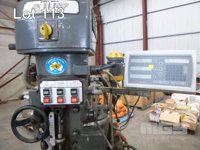 TURRET HEAD MILL, PACIFIC INTERNATIONAL 40 TAPPER SPEED RANGE 55 TO 2,940RPM SPINDLE AUTO FEED TABEL SIZE: 120 x 23cm X AXIS POWER FEED COOLANT PUMP 3HP, 3 PHASE EASSON ES14 3 AXIS DIGITAL READOUT MILL FITTED WITH SLOTTING ATTACHMENT TOOL HOLDERS & COLLET SET INCLUDED