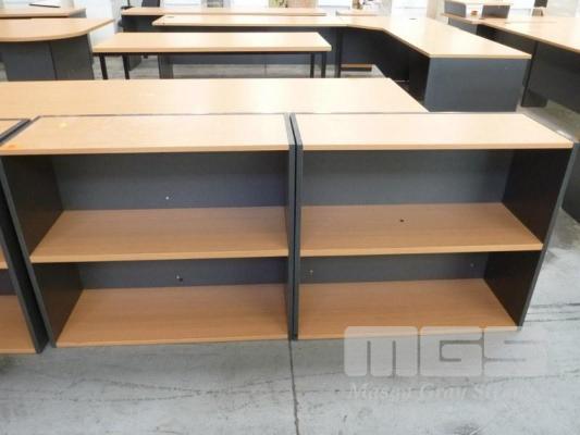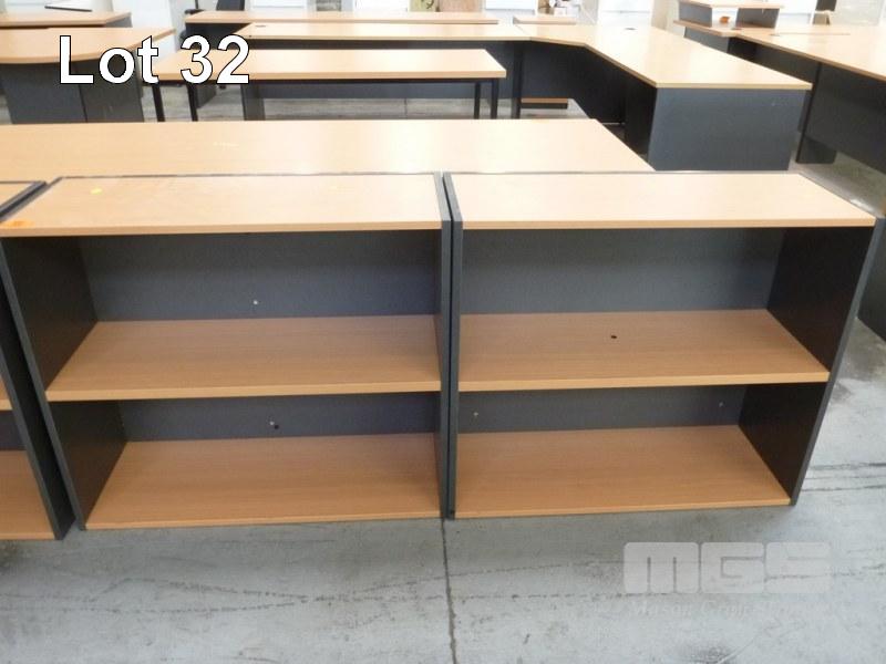 PAIR BOOKSHELVES, 2 TIER, 90 x 30 x 78cm (H), BEECH/IRONSTONE LAMINATE