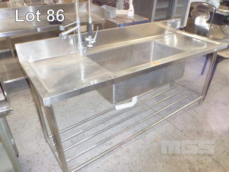STAINLESS STEEL SINGLE BOWL SINK, 200 x 70cm WITH RINSE TAP & SPLASHBACK