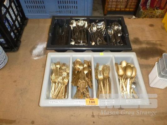 2 x TRAYS BRASS & STAINLESS STEEL CUTLERY