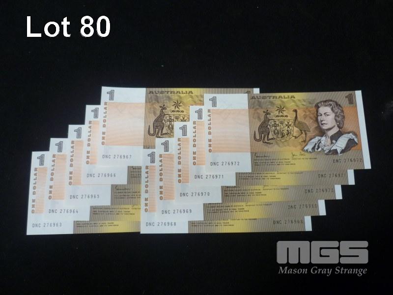 1982 10 x $1.00 CONSECUTIVE NOTES JOHNSTON STONE
