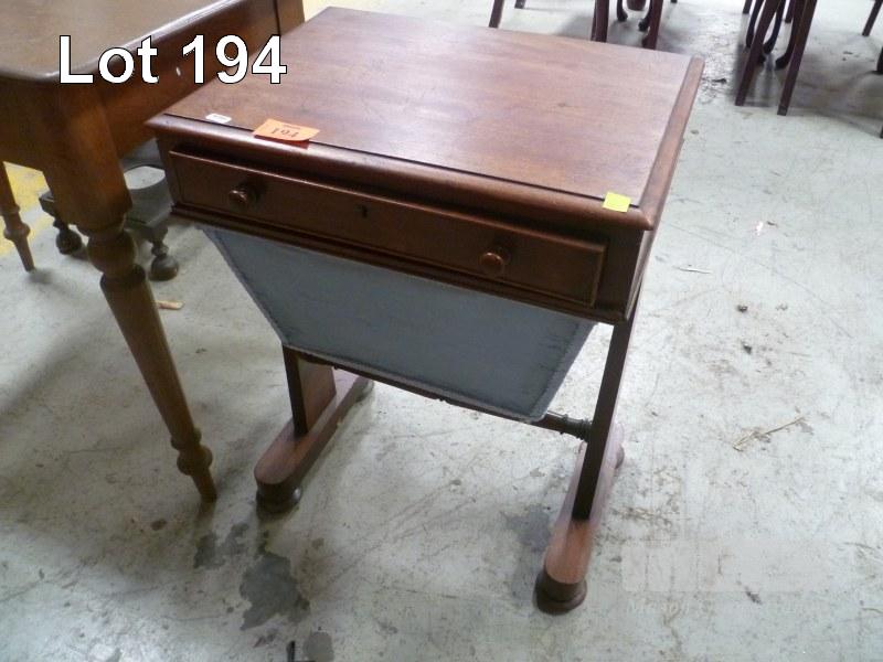 TIMBER SEWING TABLE, 2 DRAWER, STRETCHER BASE