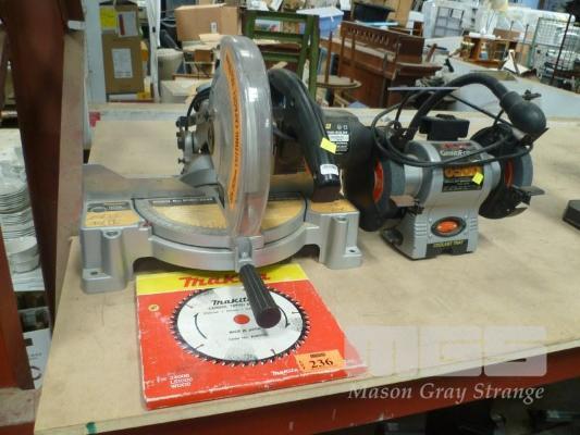 RUCKMANN COMPOUND MITRE SAW, 254mm & RYOBI GRIND FORCE 6500, 150mm BENCH GRINDER
