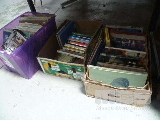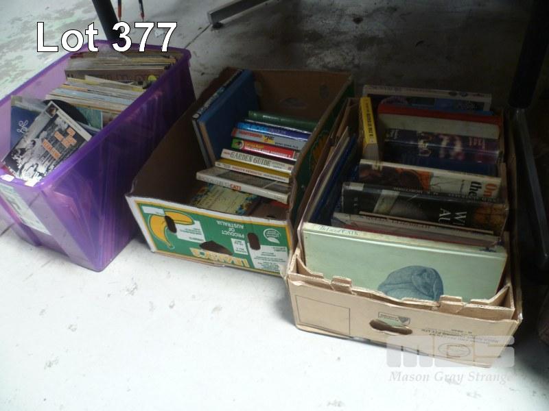 ASSORTED REFERENCE BOOKS & NOVELS, TUB OF 78 RECORDS, 45'S & CD'S, FUTURA TRAVEL CASE