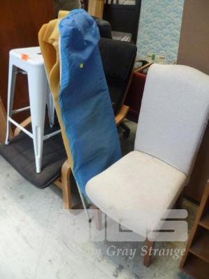 TIMBER ARM CHAIR, WHITE STEEL STOOL, TV TROLLEY, CHAIR, CANE BASKET & WIRE DRAWER UNIT