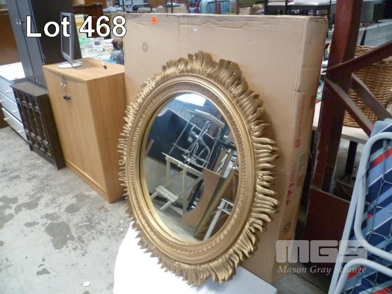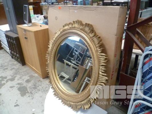 2 x GOLD FRAMED CIRCULAR WALL MIRRORS, NEW