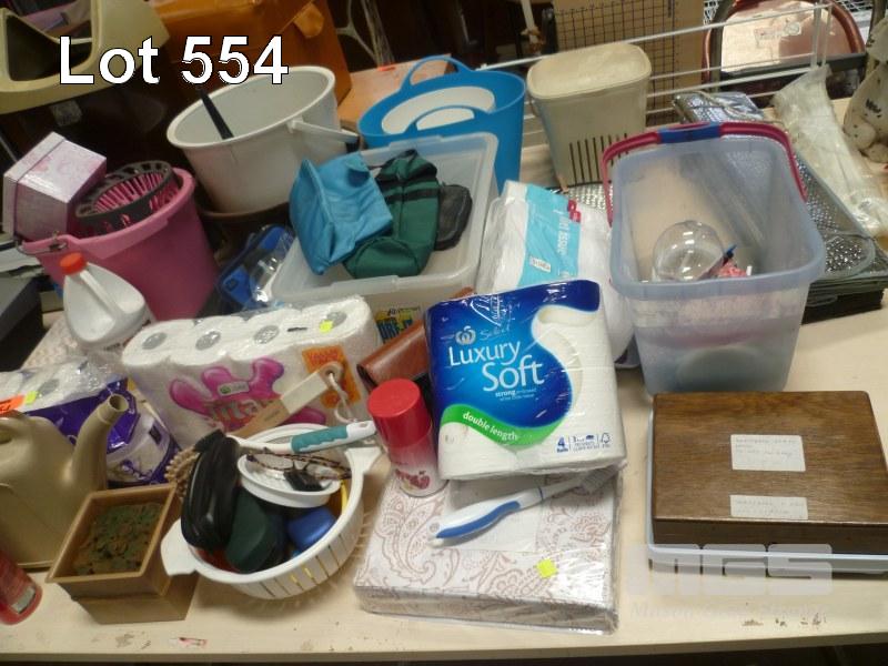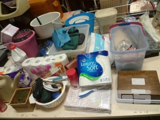 ASSORTED LAUNDRY EQUIPMENT, BUCKETS, TOILET PAPER, ETC