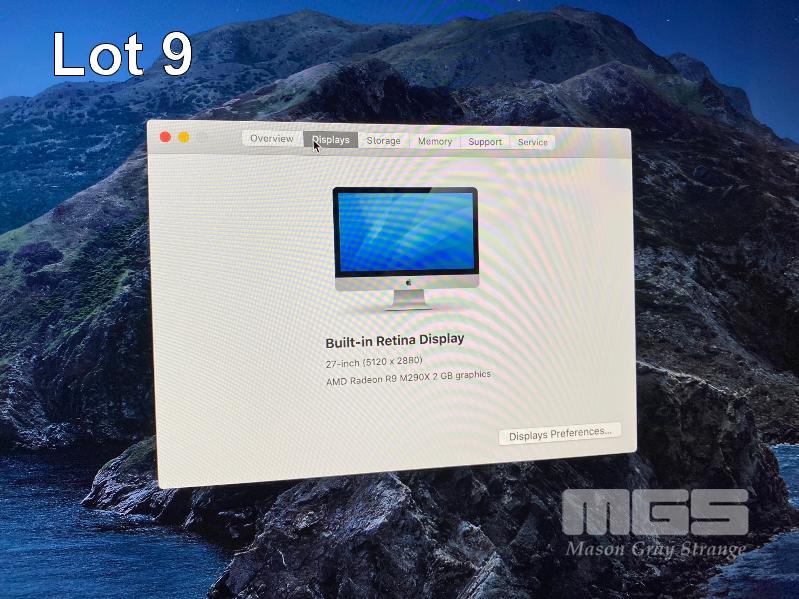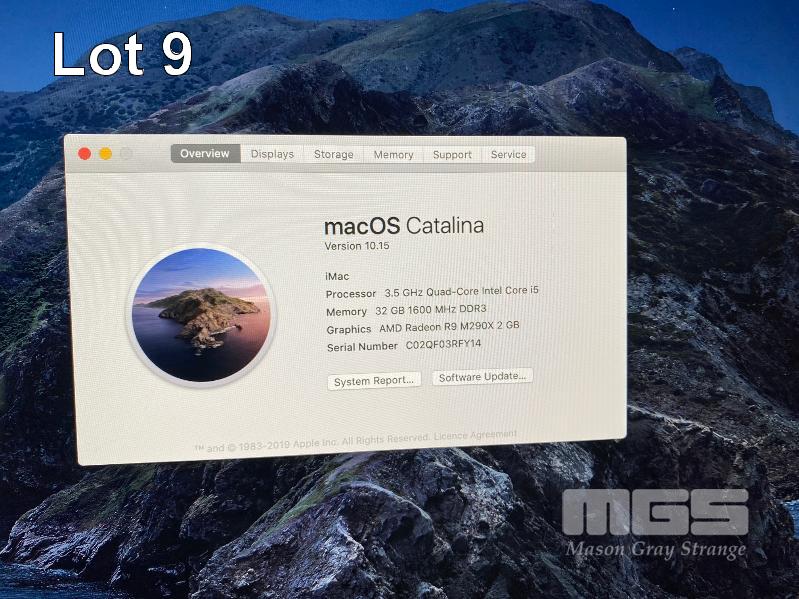 APPLE iMAC (A1419), CORE i5 4690 (4TH GEN) @ 3.5GHz, 32GB DDR3 RAM, 256GB SSD, BUILT-IN 27" RETINA DISPLAY (5120x2880), 2GB AMD RADEON R9 M290X VIDEO, Wi-Fi, MAC OS 10.15 INSTALLED (NO KEYBOARD, NO MOUSE) (NOTE: SCRATCHES ON SCREEN) S/N:C02QF03RFY14