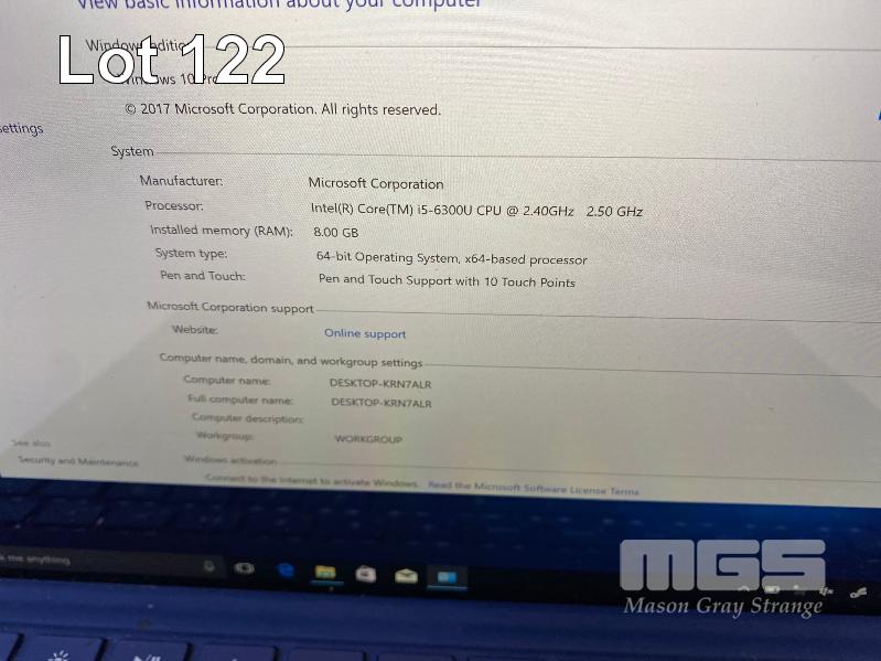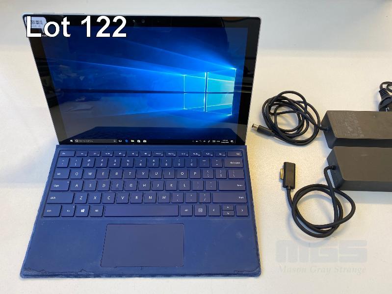 TABLET PC, MICROSOFT SURFACE PRO 4, MODEL 1724, CORE i5 6300U (6TH GEN) @ 2.4GHz, 8GB RAM, 256GB SSD, 12.3" TOUCHSCREEN, Wi-Fi, WINDOWS 10 PRO INSTALLED, KEYBOARD TYPE COVER, SURFACE DOCK (1661) WITH DOCK POWER SUPPLY (1749) S/N:043115764853