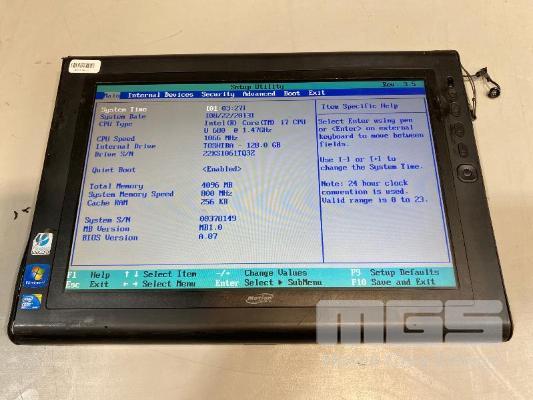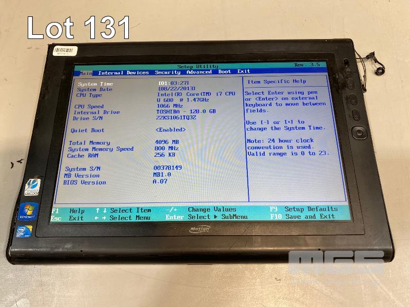 TABLET PC, MOTION COMPUTING J3500 RUGGED, CORE i7 U680 @ 1.47GHz, 4GB DDR3 RAM, 128GB SSD, 12.1" TOUCHSCREEN (NOTE: CASING POOR CONDITION, MISSING PART OF COVER) (NO POWER SUPPLY) S/N:00378149