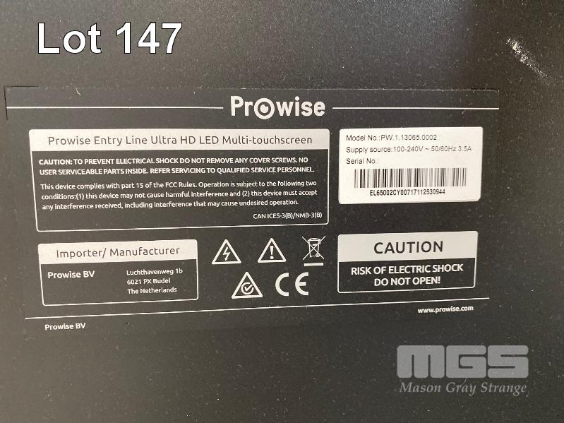 MONITOR, PROWISE ENTRY LINE 65" ULTRA HD LED MULTI-TOUCHSCREEN, 3840x2160, MODEL PW.1.13065.0002, REMOTE WITH BUILT-IN PC MODULE, CORE i5 6400 @ 2.7GHz, 4GB RAM, 128GB SSD, Wi-Fi, MODEL PW.2.17014.0001 WITH WALL BRACKET S/N:EL65002CY00717112530944