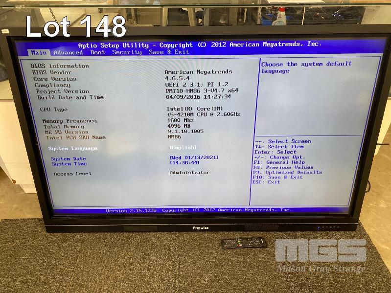 MONITOR, PROWISE ENTRY LINE 65" FULL-HD LED MULTI-TOUCHSCREEN, 1920x1080, MODEL PW.1.13065.0001, REMOTE WITH BUILT-IN PC MODULE, CORE i5 4210M @ 2.6GHz, 4GB RAM, 128GB SSD, Wi-Fi, MODEL PW.2.17005.0001 WITH WALL BRACKET S/N:006003038CY16099380235