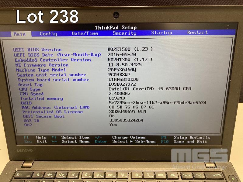 LAPTOP, LENOVO THINKPAD X260 (20F5S0J60Q), CORE i5 6300U (6TH GEN) @ 2.4GHz, 8GB DDR4 RAM, 256GB SSD, 12.5" WIDESCREEN (1366x768), INTEL HD VIDEO, Wi-Fi, BLUETOOTH, WINDOWS 10 PRO INSTALLED & POWER SUPPLY S/N:PC0HRZW2