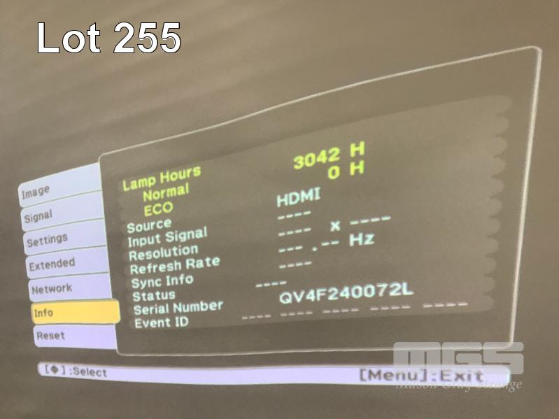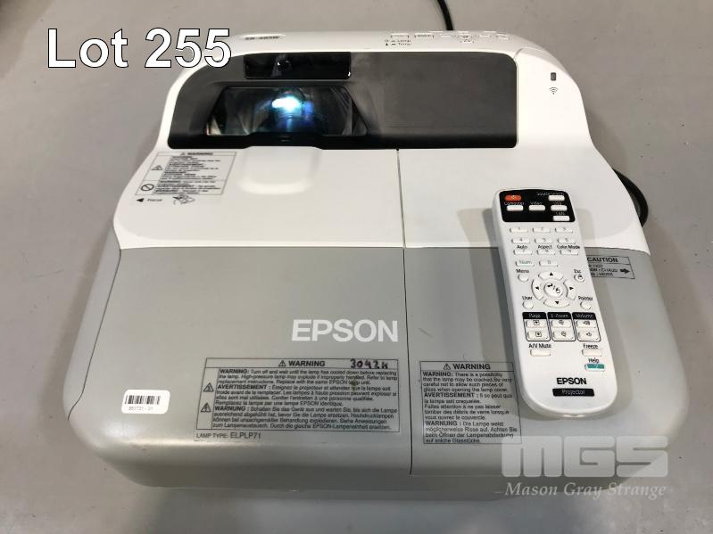 PROJECTOR, EPSON EB-485W ULTRA SHORT THROW 3LCD, 3,100 LUMENS, HDMI INPUT WITH ELPMB43 WALL MOUNT 3,042 HOURS SHOWING WITH REMOTE (TIME TO REPLACE LAMP) S/N:QV4F240072L