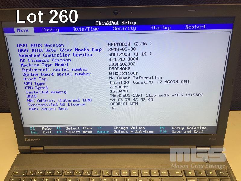 LAPTOP, LENOVO THINKPAD W540 (20BHS02902), CORE i7 4600M (4TH GEN) @ 2.9GHz, 16GB DDR3 RAM, 256GB SSD, DVD-RW, 15.6" WIDESCREEN (1920x1080), INTEL HD VIDEO, 2GB NVIDIA QUADRO K1100M VIDEO, Wi-Fi, BLUETOOTH, WINDOWS 10 PRO INSTALLED, DOCKING STATION & POWER SUPPLY S/N:R90F4AKP