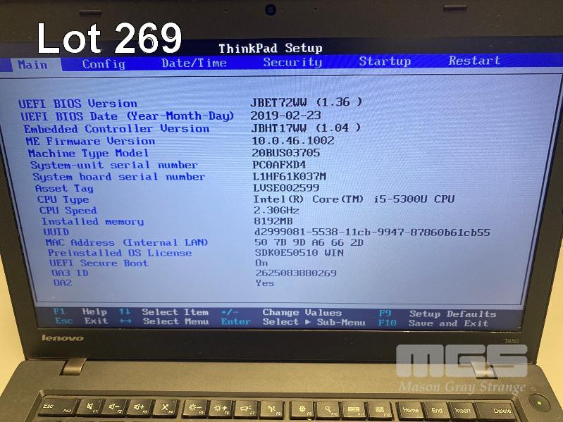 LAPTOP, LENOVO THINKPAD T450 (20BUS03705), CORE i5 5300U (5TH GEN) @ 2.3GHz, 8GB DDR3 RAM, 500GB SATA HDD, 14" WIDESCREEN (1366x768), INTEL HD VIDEO, Wi-Fi, BLUETOOTH, WINDOWS 10 PRO INSTALLED & POWER SUPPLY S/N:PC0AFXD4