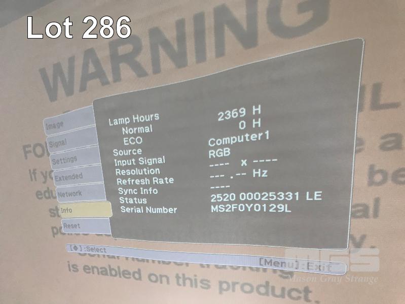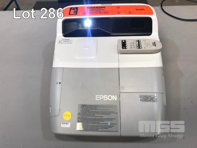 PROJECTOR, EPSON EB-450We ULTRA SHORT THROW 3LCD, 2,500 LUMENS WITH WALL MOUNT 2,369 HOURS WITH REMOTE (PASSWORD PROTECTED) S/N:MS2F0Y0129L