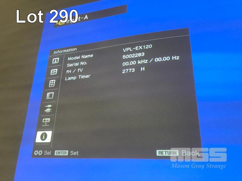 PROJECTOR, SONY VPL-EX120 3LCD, 2,600 LUMENS, 2,773 HOURS SHOWING (NO REMOTE) S/N:5002283