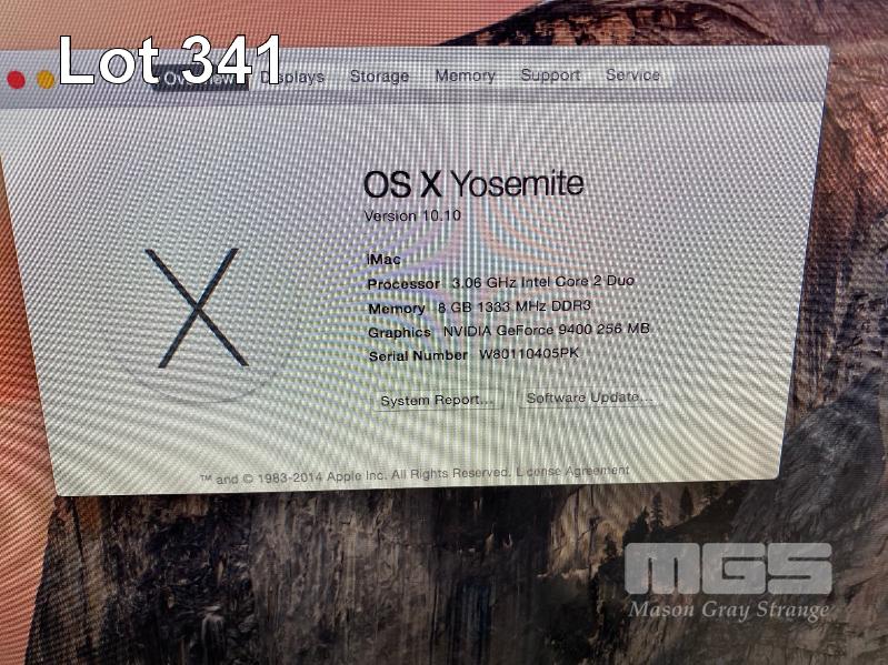 APPLE iMAC (A1311), CORE 2 DUO E7600 @ 3.06GHz, 8GB DDR3 RAM, 1TB SATA HDD, DVD-RW, BUILT-IN 21.5" DISPLAY (1920x1080), 256MB NVIDIA GEFORCE 9400 VIDEO, Wi-Fi, MAC OS 10.10 INSTALLED (NO KEYBOARD, NO MOUSE, NO APPLE POWER CORD) (NOTE: SCRATCHES ON SCREEN) S/N:W80110405PK