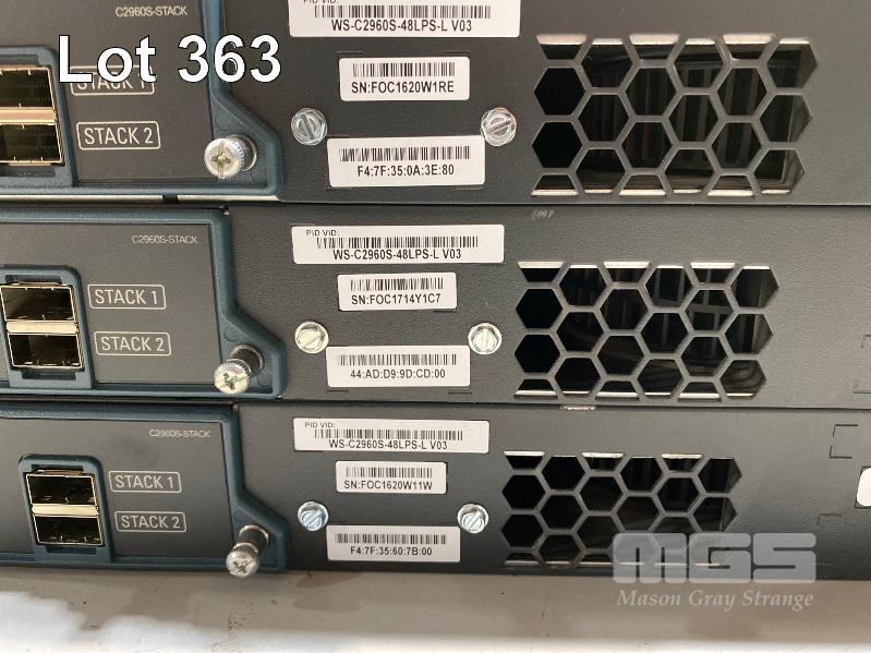 3 x CISCO CATALYST 2960-S SERIES PoE+ 48-PORT SWITCHES, WS-C2960S-48LPS-L V03 WITH C2960S-STACK MODULES (NO CABLES) S/N:FOC1620W1RE, FOC1714Y1C7, FOC1620W11W