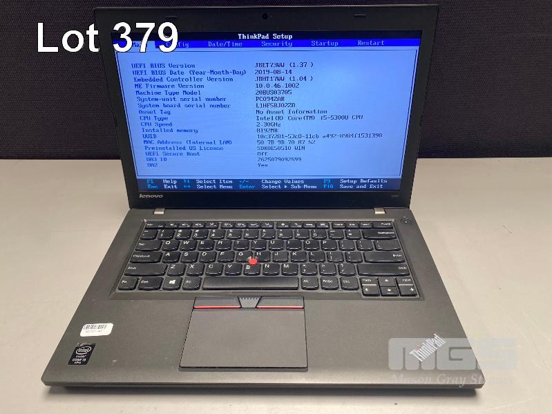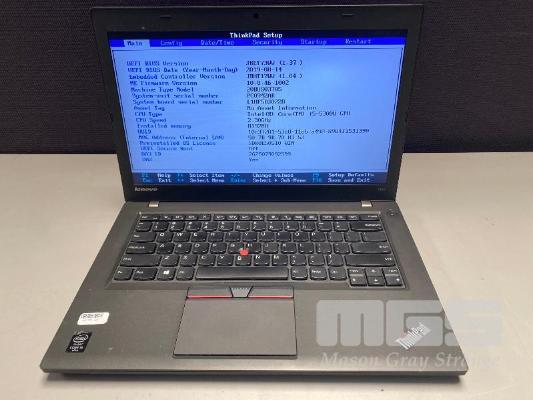 LAPTOP, LENOVO THINKPAD T450 (20BUS03705), CORE i5 5300U (5TH GEN) @ 2.3GHz, 8GB DDR3 RAM, 500GB SATA HDD, 14" WIDESCREEN & POWER SUPPLY (NOTE: BIOS PASSWORD PROTECTED) S/N:PC094ZAR