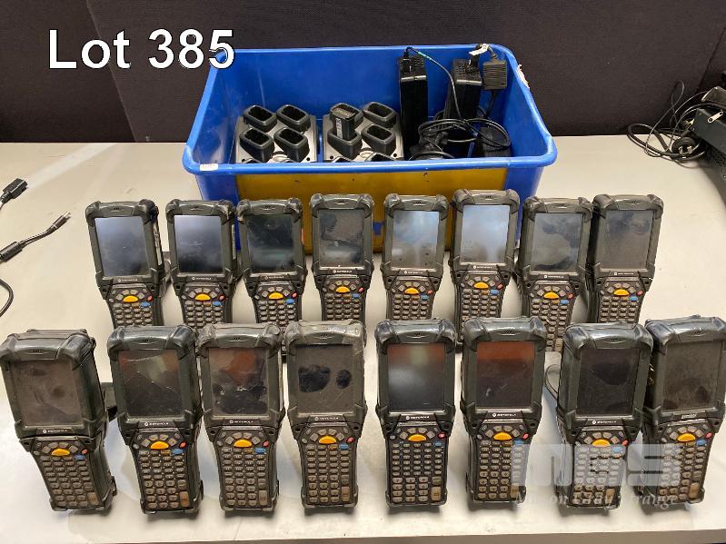 16 x MOTOROLA / SYMBOL MC9190 MOBILE HANDHELD COMPUTERS (SOME DAMAGED), 4 x 4-SLOT BATTERY CHARGERS WITH 4 x POWER SUPPLIES