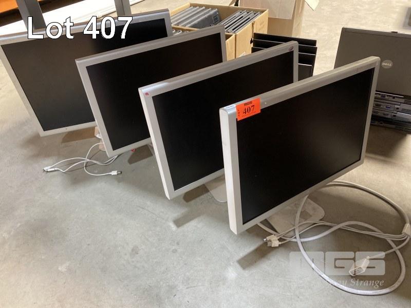 3 x MONITORS, APPLE 20" CINEMA DISPLAY (A1081) (NO POWER ADAPTERS) 1 x MONITOR, APPLE 23" CINEMA DISPLAY (A1082) (NO POWER ADAPTER) (NOTE: SCRATCHES ON SCREENS)