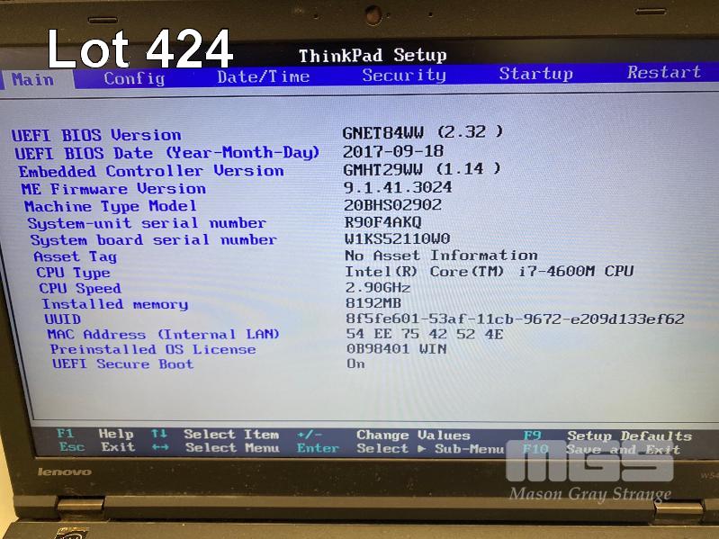 LAPTOP, LENOVO THINKPAD W540 (20BHS02902), CORE i7 4600M (4TH GEN) @ 2.9GHz, 8GB DDR3 RAM, 256GB SSD, DVD-RW, 15.6" WIDESCREEN (1920x1080), INTEL HD VIDEO, 2GB NVIDIA QUADRO K1100M VIDEO, Wi-Fi, BLUETOOTH, WINDOWS 10 PRO INSTALLED & POWER SUPPLY (NOTE: MARKS ON SCREEN, SPEAKER FAULT, DAMAGE TO CASING) S/N:R90F4AKQ