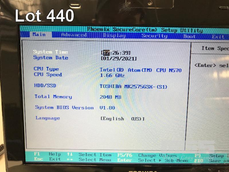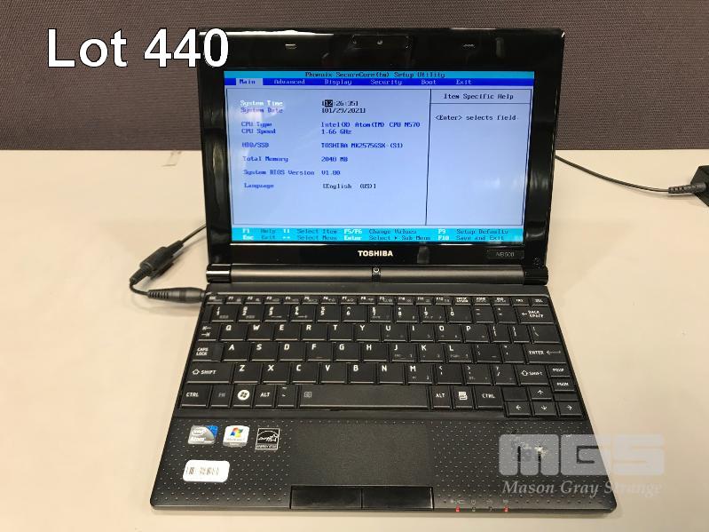 NETBOOK, TOSHIBA NB500 (PLL50A-02800D), ATOM N570 @ 1.66GHz, 2GB DDR3 RAM, 250GB SATA HDD, 10.1" SCREEN & POWER SUPPLY (NOTE: BATTERY NOT CHARGING) S/N:6B016709K