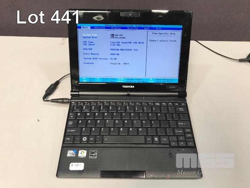 NETBOOK, TOSHIBA NB500 (PLL50A-02800D), ATOM N570 @ 1.66GHz, 2GB DDR3 RAM, 250GB SATA HDD, 10.1" SCREEN & POWER SUPPLY (NOTE: BATTERY NOT CHARGING) S/N:6B054635K