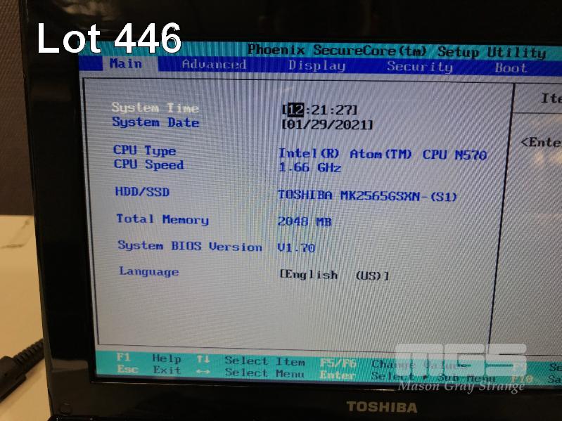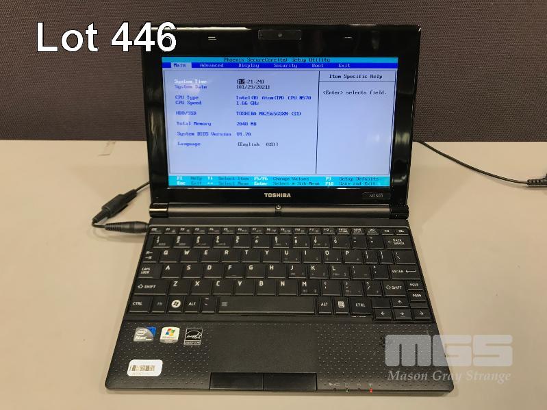 NETBOOK, TOSHIBA NB500 (PLL50A-02800D), ATOM N570 @ 1.66GHz, 2GB DDR3 RAM, 250GB SATA HDD, 10.1" SCREEN & POWER SUPPLY (NOTE: BATTERY NOT CHARGING) S/N:5B110491K