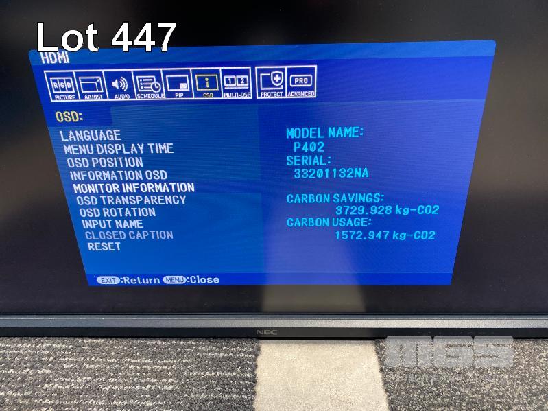 MONITOR, NEC MULTISYNC P402 40" LCD COMMERCIAL DISPLAY, HDMI INPUT (NO REMOTE, NO STAND) S/N:33201132NA