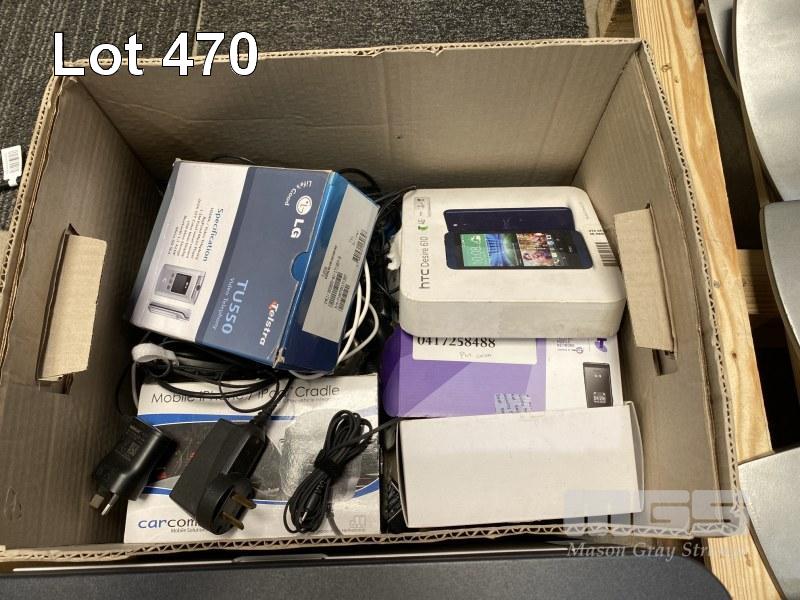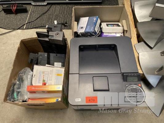 KYOCERA PRINTER (NO TONER), LAPTOP DOCKING STATIONS (NO POWER SUPPLIES), ASST OLD MOBILE PHONES ETC