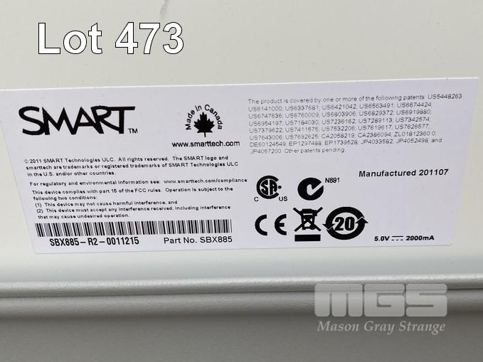 11 x SMARTBOARDS INC. 10 x SMART SBX885 INTERACTIVE WHITEBOARDS, 87" 1 x SMART SB685 INTERACTIVE WHITEBOARD, 87" WITH ASST SPEAKERS, TRAYS & PENS