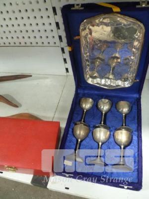 EPNS GOBLET SET WITH TRAY IN CARRY CASE WITH JEWELLERY BOX