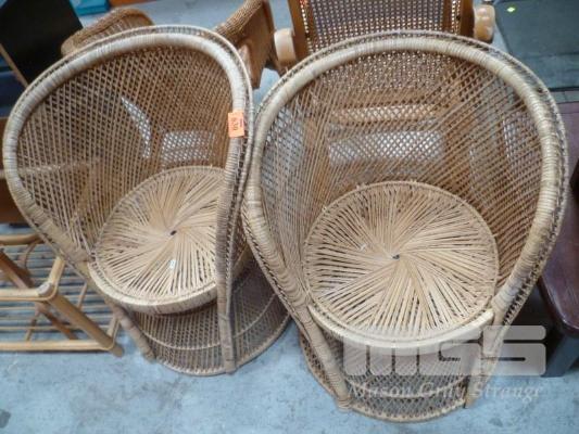 PAIR CANE TUB CHAIRS (1 x REQUIRES REPAIR)