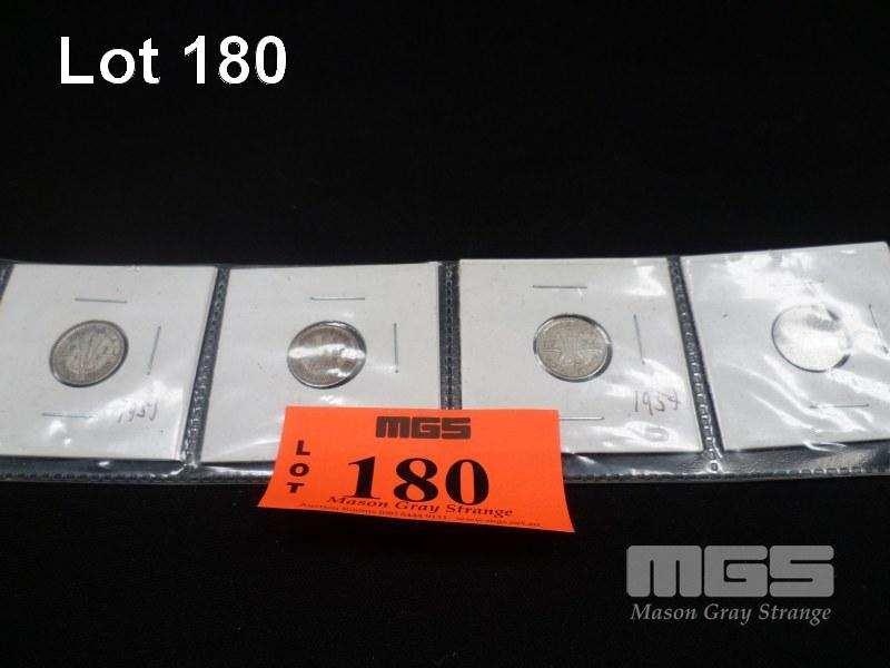 THREE PENCE, SILVER AUSTRALIAN, 1947, 1948, 1949, 1950